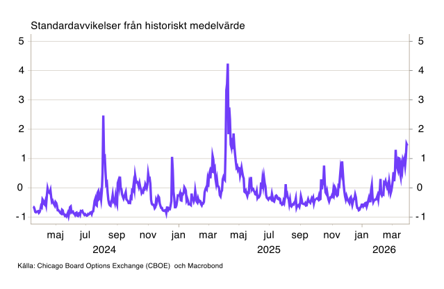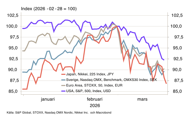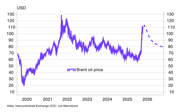 Anmärkningsvärt just nu är gapet mellan vad centralbankerna kommunicerar och vad marknaden prisar in. Riksbanken och övriga centralbanker håller fast vid att konflikten är övergående och ger temporära inflationseffekter – något de väljer att se igenom. Räntebanorna är i stort sett oförändrade, med Norges bank som ett undantag. Centralbankerna är dock noga med att betona att prognoserna baserar sig på just huvudscenariot om att konflikten går över relativt snabbt, samt att riskerna är betydande.
