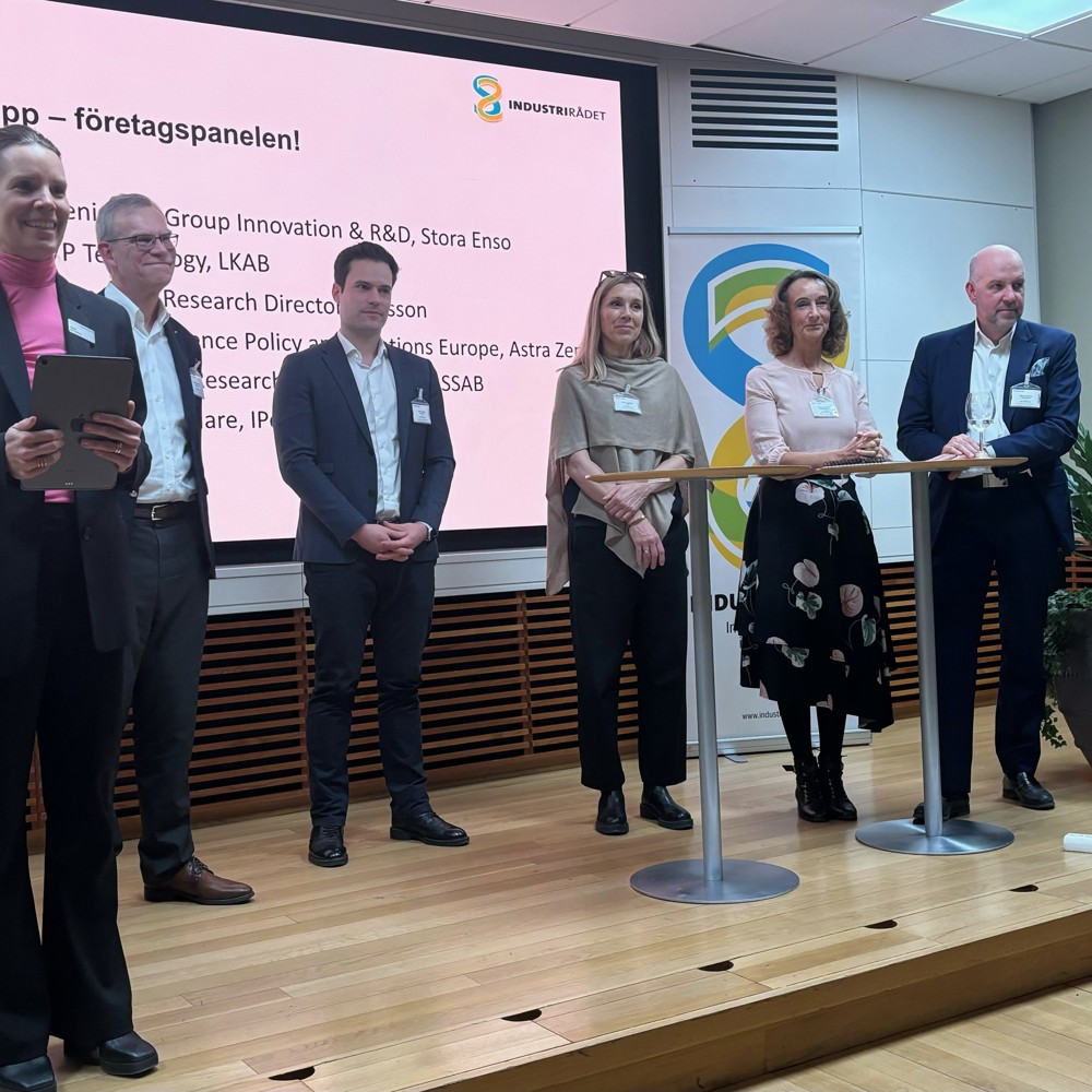 Därefter följde en paneldiskussion med representanter från företag som Stora Enso, LKAB, Ericsson, Astra Zeneca, SSAB och IPercept. Diskussionen rörde bland annat behovet av ökade investeringar i forskning och innovation, mer behovsmotiverad forskning och vikten av att stärka hela värdekedjan från startups till globala företag. Att statliga investeringar gör det möjligt för akademi och institut att möta de industriella behoven var något som blev tydligt under diskussionen.